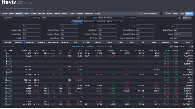 The cornerstone of the Finviz platform is, without question, its world-class stock screener. This is where the platform truly dominates its competition. The efficiency and speed of the Finviz screener are virtually unmatched, allowing traders to filter through thousands of stocks in under a second. The screener is logically divided into three main categories of filters: